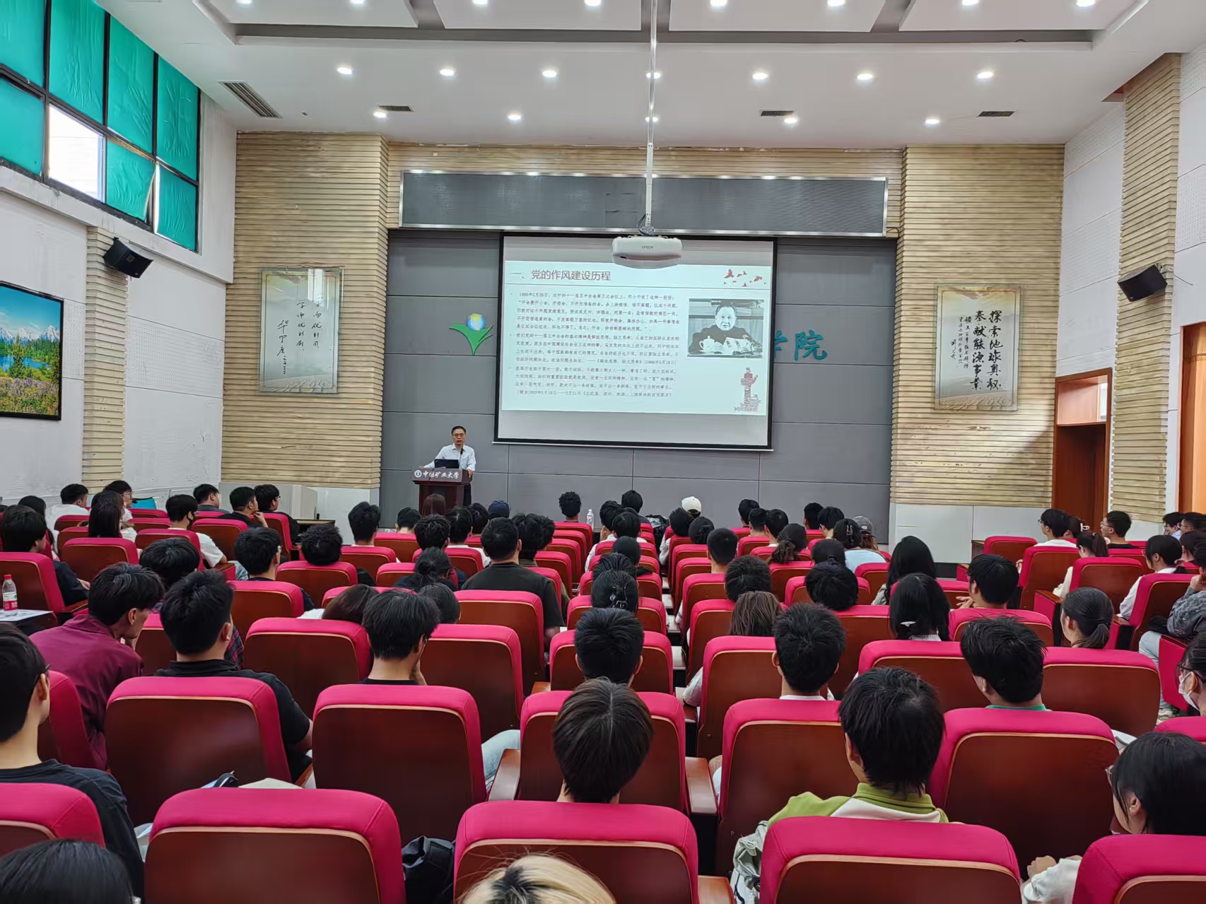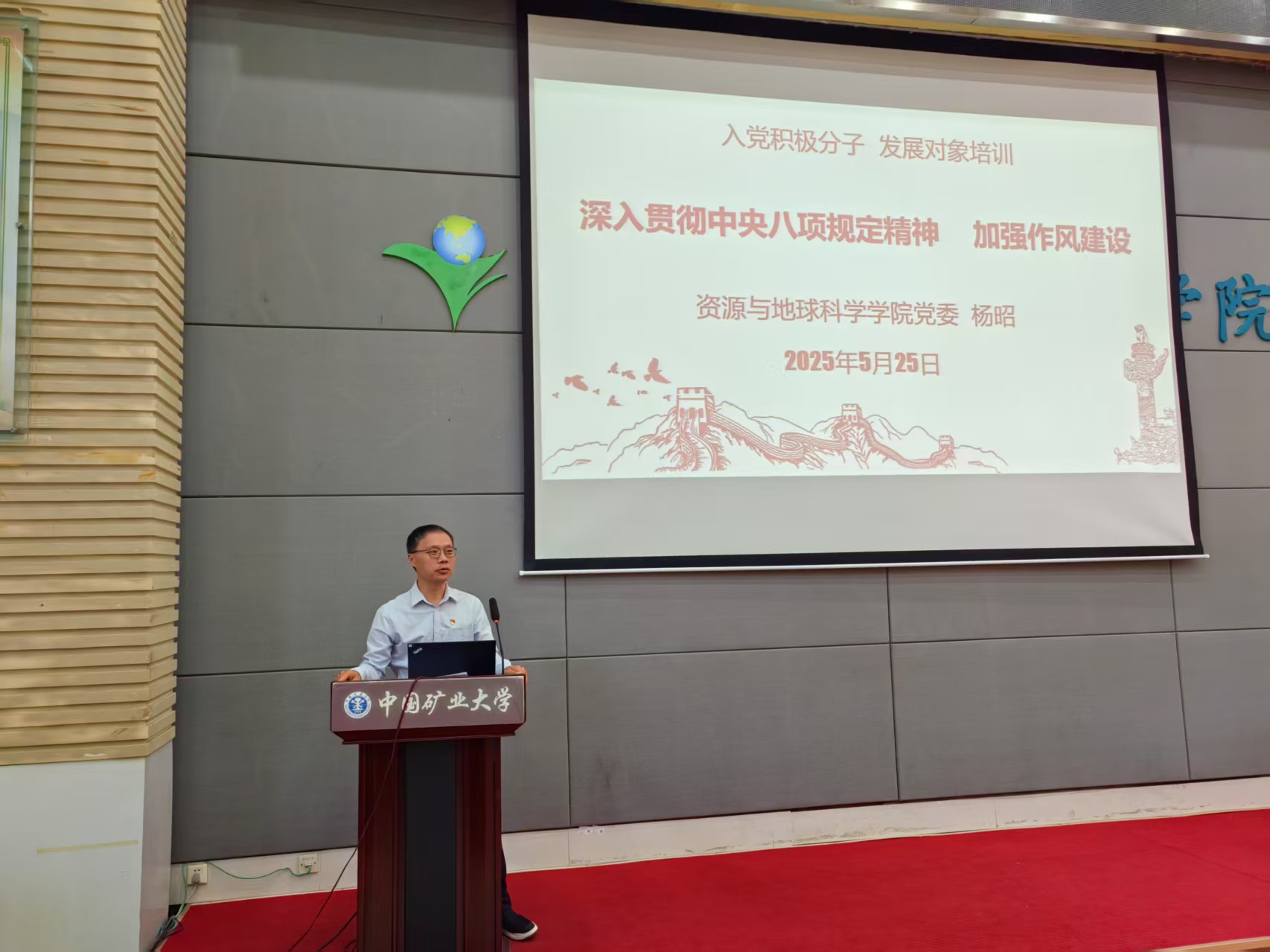 5月25日上午,学院在资源楼C402报告厅举办第67期入党积极分子、发展对象培训班线下党课,学院党委副书记杨昭围绕“深入贯彻中央八项规定精神 加强作风建设”主题讲授党课,130余名入党积极分子、发展对象参加党课。