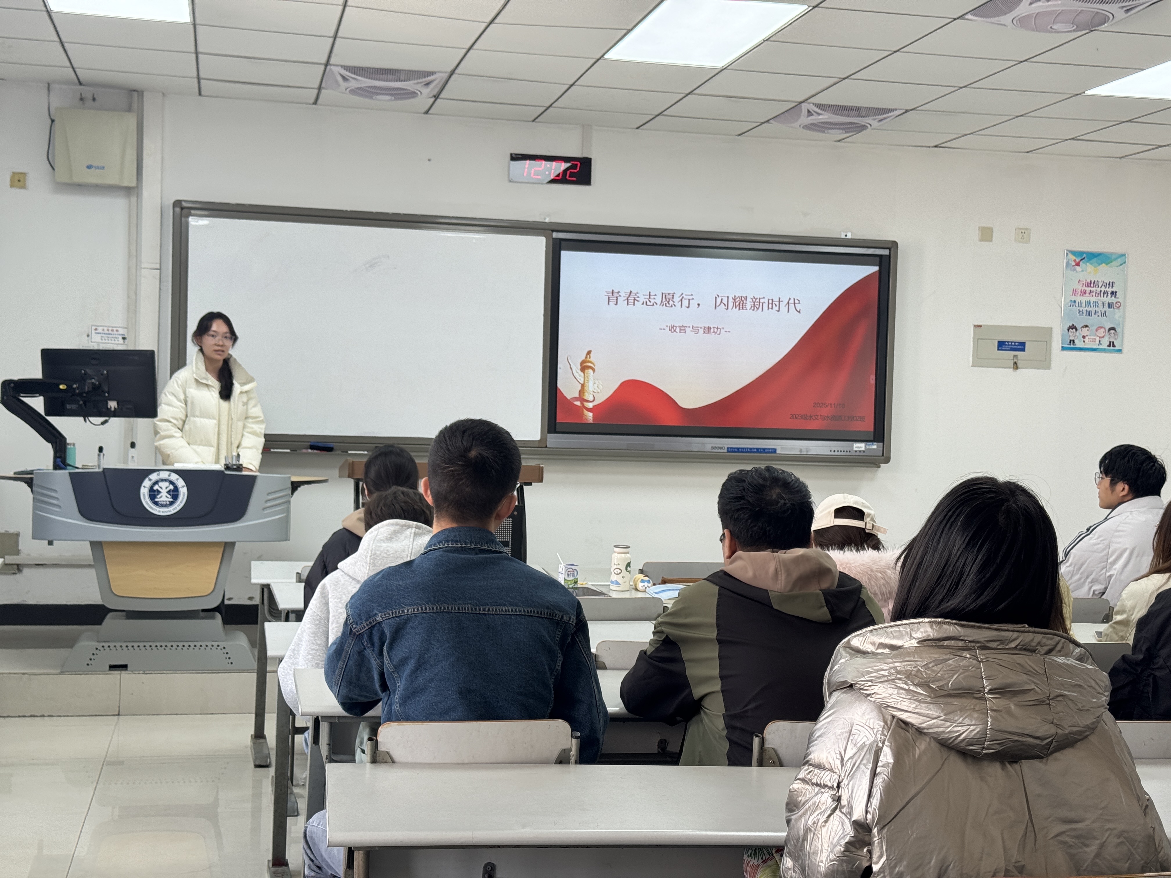 本次主题团日活动充分发挥了党团共建的引领作用。学院学生党员工作站全体党员深入各班团课现场,与团员青年们面对面交流。党员同志们结合自身在学习科研、社会实践、职业规划等方面的切身体验,分享了如何将个人成长融入国家发展大局的思考与实践。他们用质朴的语言和真实的故事,勉励同学们坚定理想信念,珍惜宝贵时光,练就过硬本领,在民族复兴的伟业中挥洒青春汗水。这种“身边人讲身边事”的引领方式,引发了在场同学的强烈共鸣,起到了显著的思想启迪和榜样示范效果。