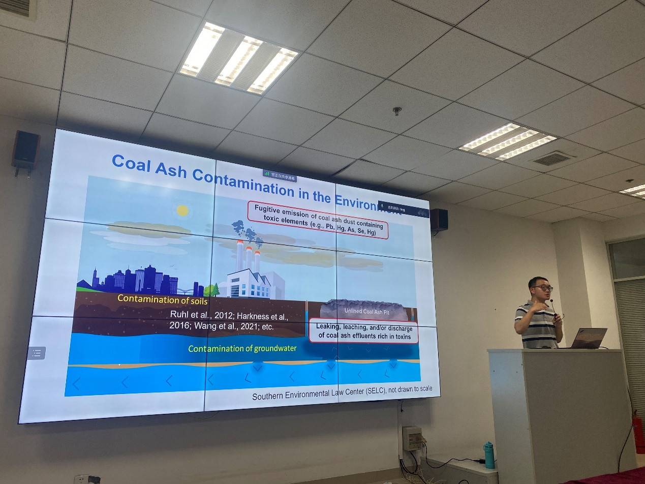 王振以“金属环境污染物的地球化学示踪”为题,从粉煤灰的产生原理、粉煤灰的元素组成、粉煤灰在研究区的分布、具体采样方法、元素年代测定五个方面进行了详细的讲述,提出粉煤灰污染被忽略相关科学问题,分享了其提出的粉煤灰元素示踪等研究成果。