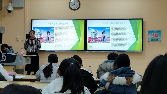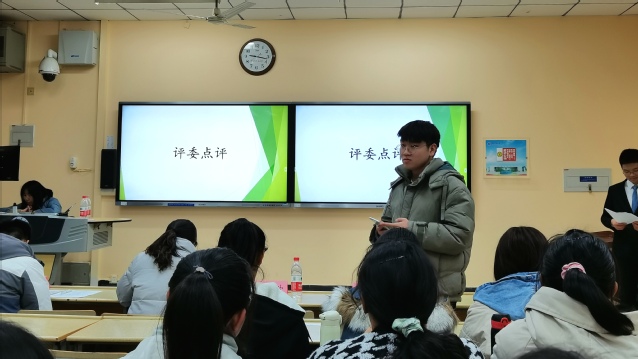 中场休息的“踩准重点”游戏环节,活跃了现场的气氛,增强了同学们的参与度。游戏过后,进入“新闻知识竞答”和“还原新闻现场”环节。其中,“新闻知识竞答”环节全面考察了同学们的知识储备量,使在场的同学们了解到了更多的传媒知识。而“还原新闻现场”环节则是让各参赛队伍根据题目中所给的提示,在规定时间内采写一篇新闻并进行现场播报,体现了参赛选手们的传媒素养和现场表达能力。最后,由我院大学生传媒中心主任闫顺,信控学院大学生传媒中心主任庄国炜,环测学院大学生传媒中心主任方卓元对选手进行点评,既赞扬了参赛选手们的精彩表现,同时也指出了大家的不足之处,希望大家今后能够继续努力,为我校校园传媒的建设贡献自己的力量。