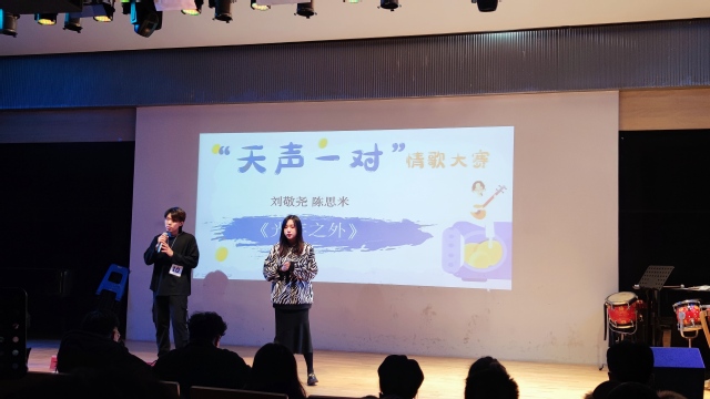12月12日晚七点,我院学生会生活权益部联合经济管理学院学生会女生成长及礼仪展示部、机电工程学院学生会文礼部、人文与艺术学院学生会文体部于建筑与设计学院报告厅举办了第十届“天声一对”情歌大赛决赛。