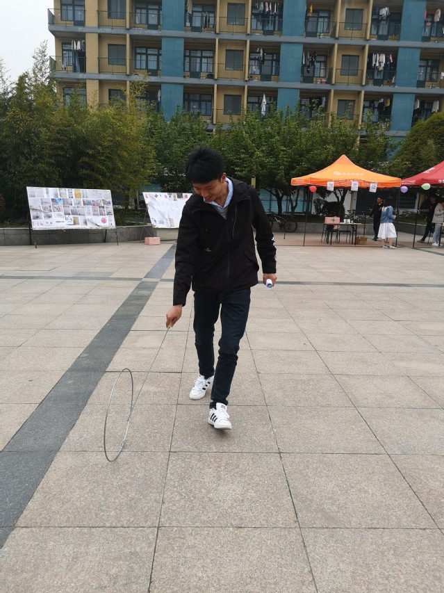 20日上午7点,我院宣传部的同学就开始着手准备工作。本次活动分为传统古风游戏区和传统文化体验区。传统古风游戏区包括“传统竞猜”、“让毽子飞”、“解九环”、“打陀螺”、“滚铁环”、“跳绳”和“抖空竹”等游戏;传统文化体验区包括书法体验和剪纸体验。