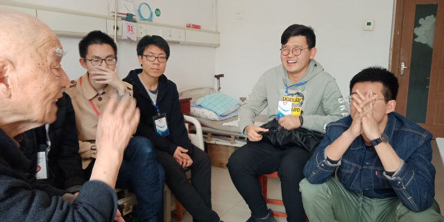 活动开始,志愿者们自发组队去找老人聊天。有的老人向志愿者讲述自己年轻时的经历,有的老人向志愿者们讲述他们那个年代的奇闻轶事。志愿者们听得津津有味,在老人的讲述中体会革命先烈的英勇无畏,体会困难年代生活的艰辛,每个志愿者都收获颇丰。一位九十多岁的老教师教导志愿者们要珍惜现在来之不易的幸福生活,努力学习充实自己,为国家建设做贡献。