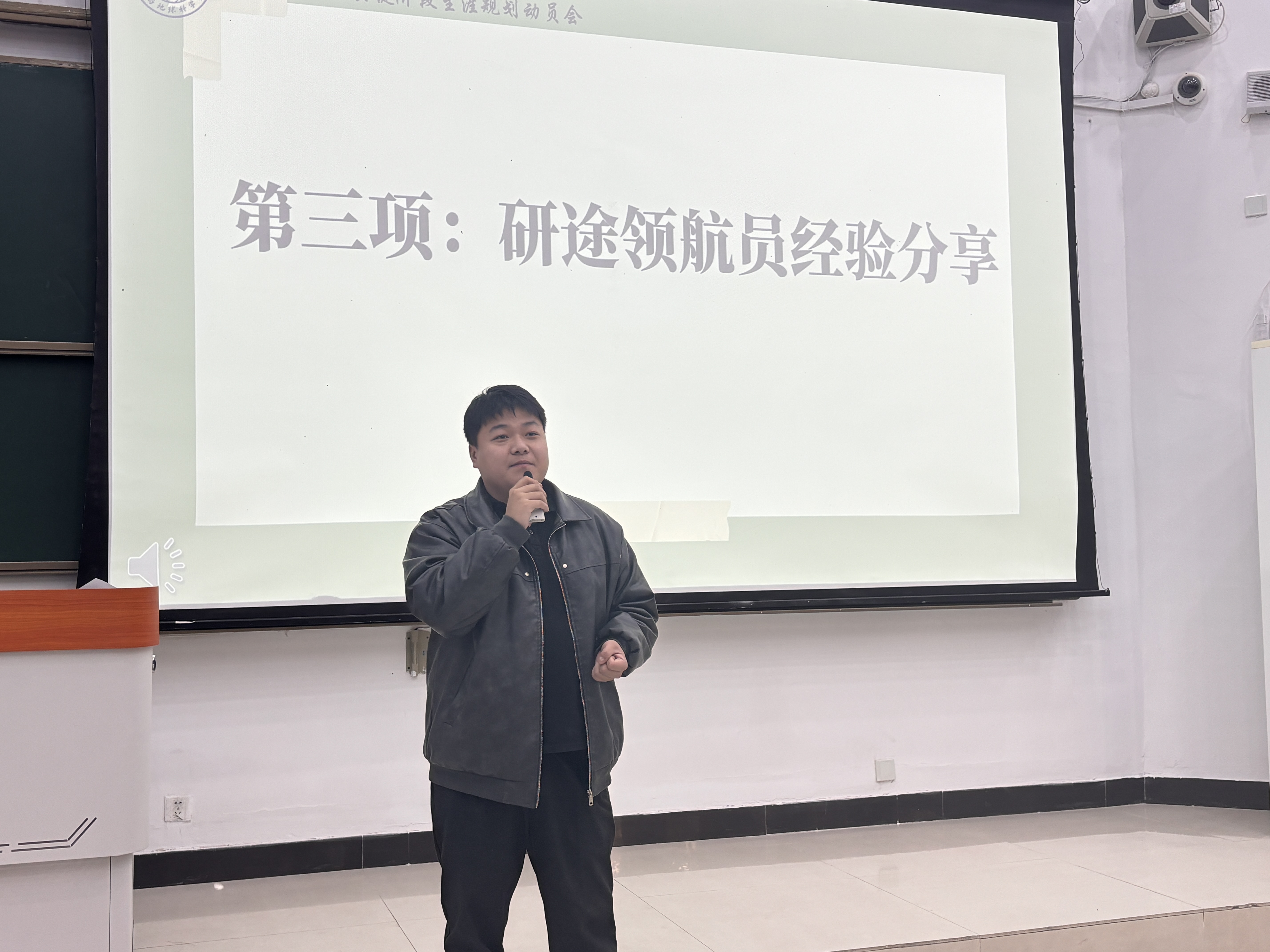 学院党委副书记杨昭作动员讲话。他立足当前升学、就业形势与学院人才培养定位,围绕职业规划、学术追求与人生发展三个维度,深入阐释未来规划的重要意义,激励同学们坚定信心、科学规划,学院将全程提供资源支持与服务保障,助力每一位学子逐梦前行。