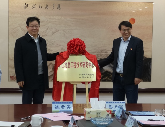 3月14日,我院与江苏煤炭地质局合作成立的产学研合作签约仪式及“产学研合作基地”、“矿山地质工程技术研究中心”、“校外实习实践基地”揭牌仪式在南京江苏煤炭地质局举行。我院党委书记魏世英、副院长刘志新、党政办主任刘裕国、许进鹏和申建教授,江苏煤炭地质局局长蔡卫明、副局长杨文光、局科技地质部经理平立华、江苏煤炭地质二队队长李文东、副队长张维生等相关人员出席了揭牌仪式。揭牌仪式由江苏局副局长杨文光主持。