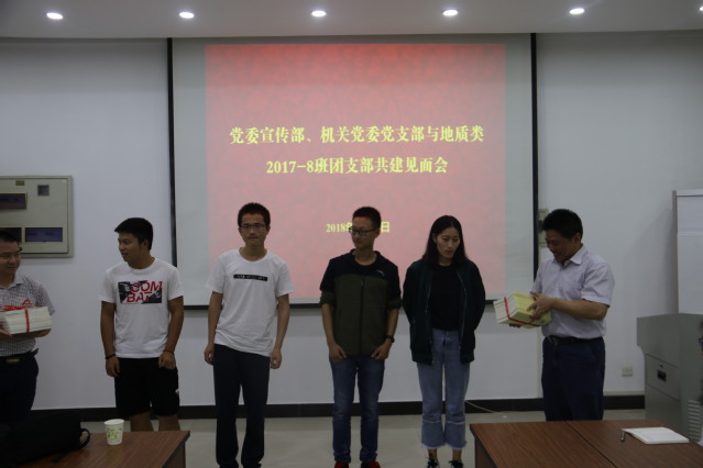 此次活动为党团共建第一次师生见面会,是双方筹备期待已久的相互认识并结对的机会。班长商冬明向党支部成员介绍了班级概况,并带领团支部成员总结回顾了上学期班级的发展情况,让党支部更加全面的认识地质类2017-8班团支部,也让各位团支部成员认识到了他们过去取得的成就和存在的不足。