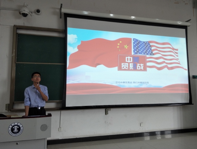 9月12日下午3点,我院17级于博二C302开展了“中美贸易摩擦辨析”专题教学。本次讲座由2017级辅导员赵斌主持,辅导员苏航、刘欣然以及2017级全体学生参加讲座。