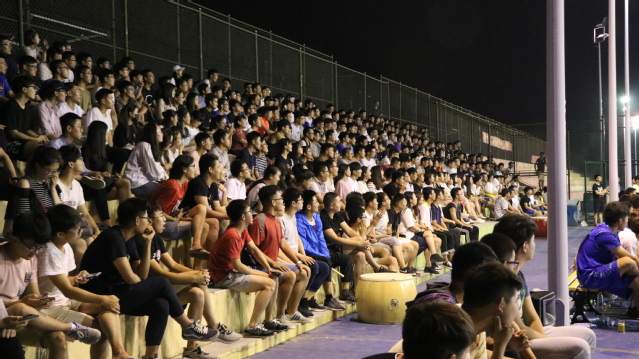 第三节比赛开始后,比赛进入了白热化,对面管理学院奋力直追,甚至一度反超比分。而我院不骄不躁,坚持做好防守,成功打成了一次进攻高潮,追回比分,其中达娃和叶尔扎提的表现也一度点燃全场,整个球场沸腾起来。第三节结束后,我院以两分的优势进入至关重要的第四节。
