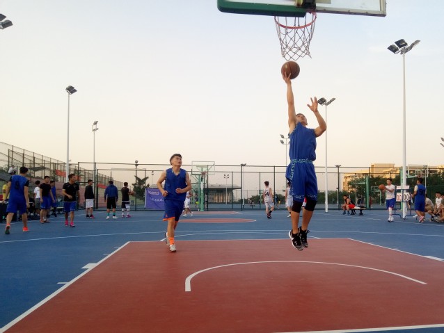 比赛开始前,参赛队员便提前到达比赛现场进行赛前热身准备。先后以跑步热身、压腿、投篮的形式来让自己进入状态。六点三十分,随着裁判员的哨声响起,“行健杯”男篮总决赛第二场比赛正式开始。