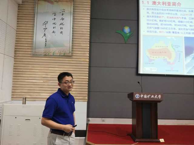 随后,申老师为大家分享了自己的访学体验。首先,申老师以图文结合的方式为同学们展现了昆士兰大学浓厚的学习氛围和优雅的学习环境,并着力介绍了当地大学严格的成绩评定制度和教学相长的教学模式。然后,申老师对比了我校与当地大学科研文化的异同,国外科研实验室的条款较为严明,进入实验室首先要进行相关考试,同时申老师也对我院煤层气的学术研究加以肯定。