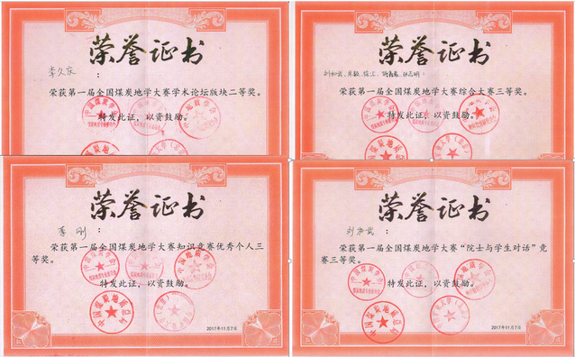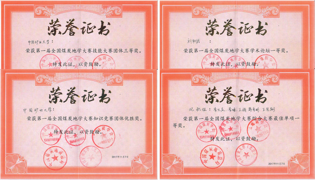 在第一届全国煤炭地学大赛中,我院代表学校赛出了成绩,赛出了风采,为矿大提交了一份优秀的答卷,我院学子将继续谦虚谨慎、再接再厉,为国家能源事业的发展作出新的更大贡献。