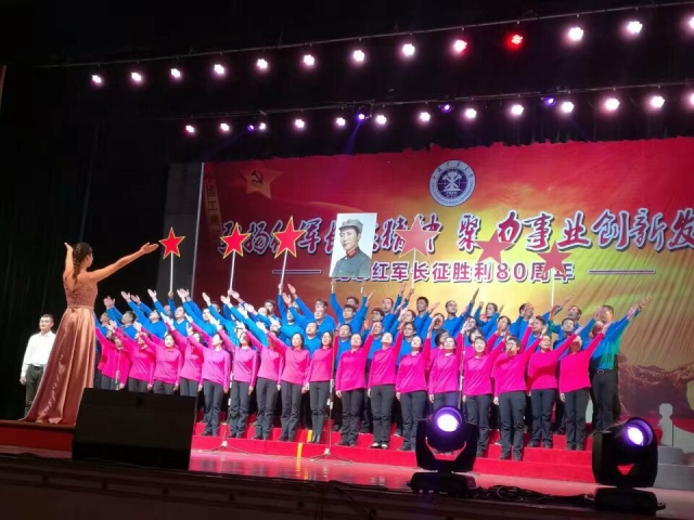 10月23日,为庆祝红军长征胜利80周年,中国矿业大学在文昌校区科技馆举办纪念长征胜利80周年歌咏比赛。由我院工会组织、教职工积极参与组成的合唱团代表学院参加歌咏比赛。