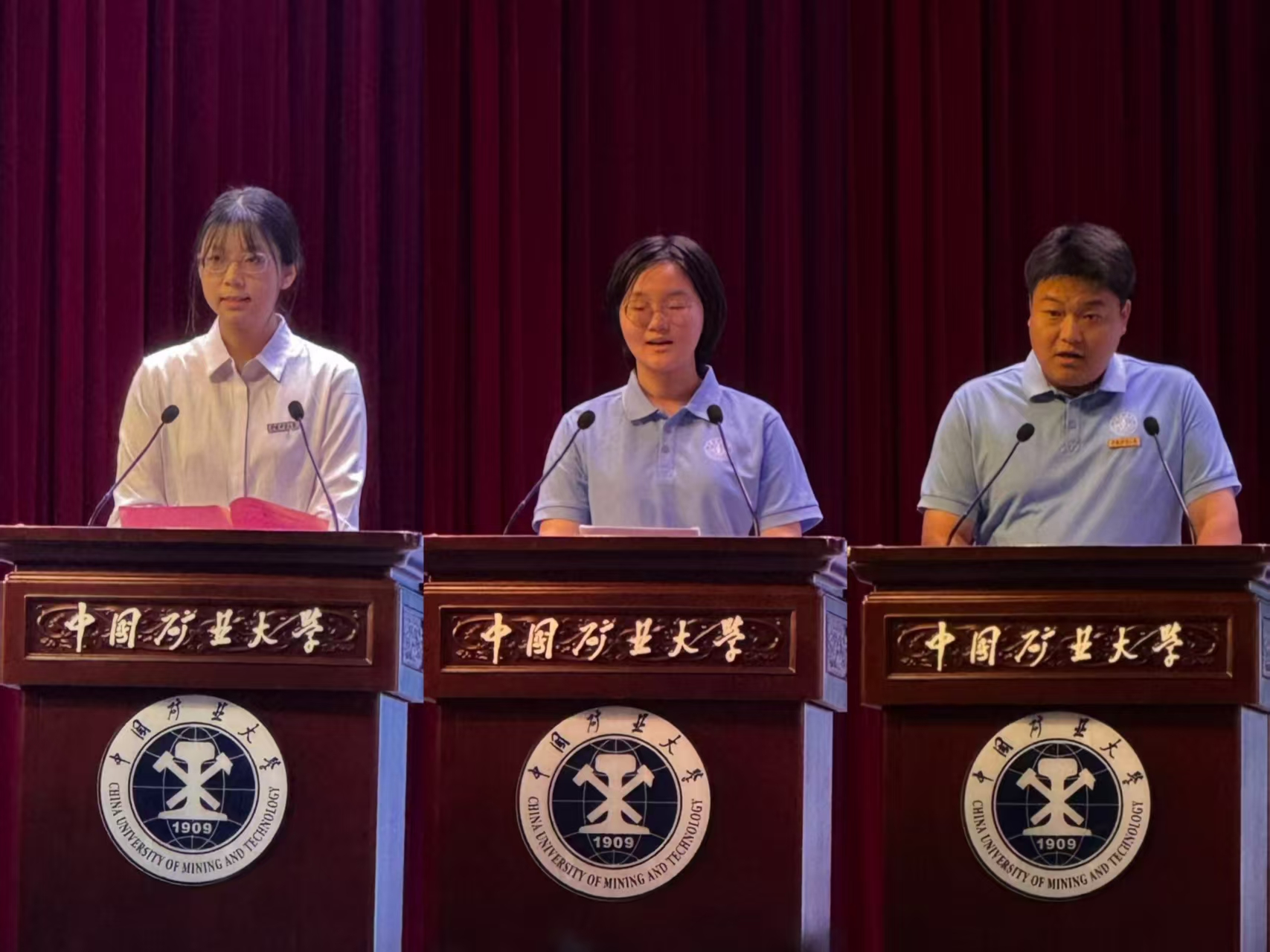 本科生新生代表、水文与水资源工程2025-1班范思睿讲述了自己与矿大结缘的故事,并分享了自己因受父母职业的影响和熏陶,高考后坚定选择水文专业的初心。她表示,未来四年,将在资源学院潜心求知、深钻精研、争取用专业所学服务社会、回报社会。
