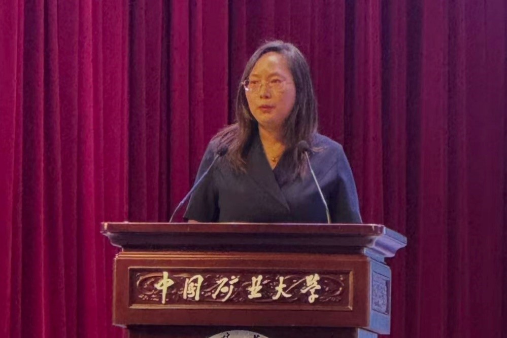 在校学生代表、地球物理学地球物理学2023-2班张佳丽分享了在专业学习、参与学生工作、提升综合能力等方面的经历。她倡议新同学们要认识自我、做好规划;坚持知行合一、勇于探索创新;积极参与实践、努力创造价值,为行业进步和国家发展贡献自己的力量。
