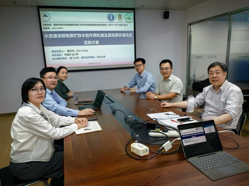 10月27日,依托国家自然科学基金委国际(地区)合作与交流项目(NSFC-FDCT)水资源深部地质贮存水岩作用机理及其地质环境效应(42561160092),内地方项目负责人隋旺华教授带领团队与境外项目负责人澳门大学高亮博士团队开展了学术交流。