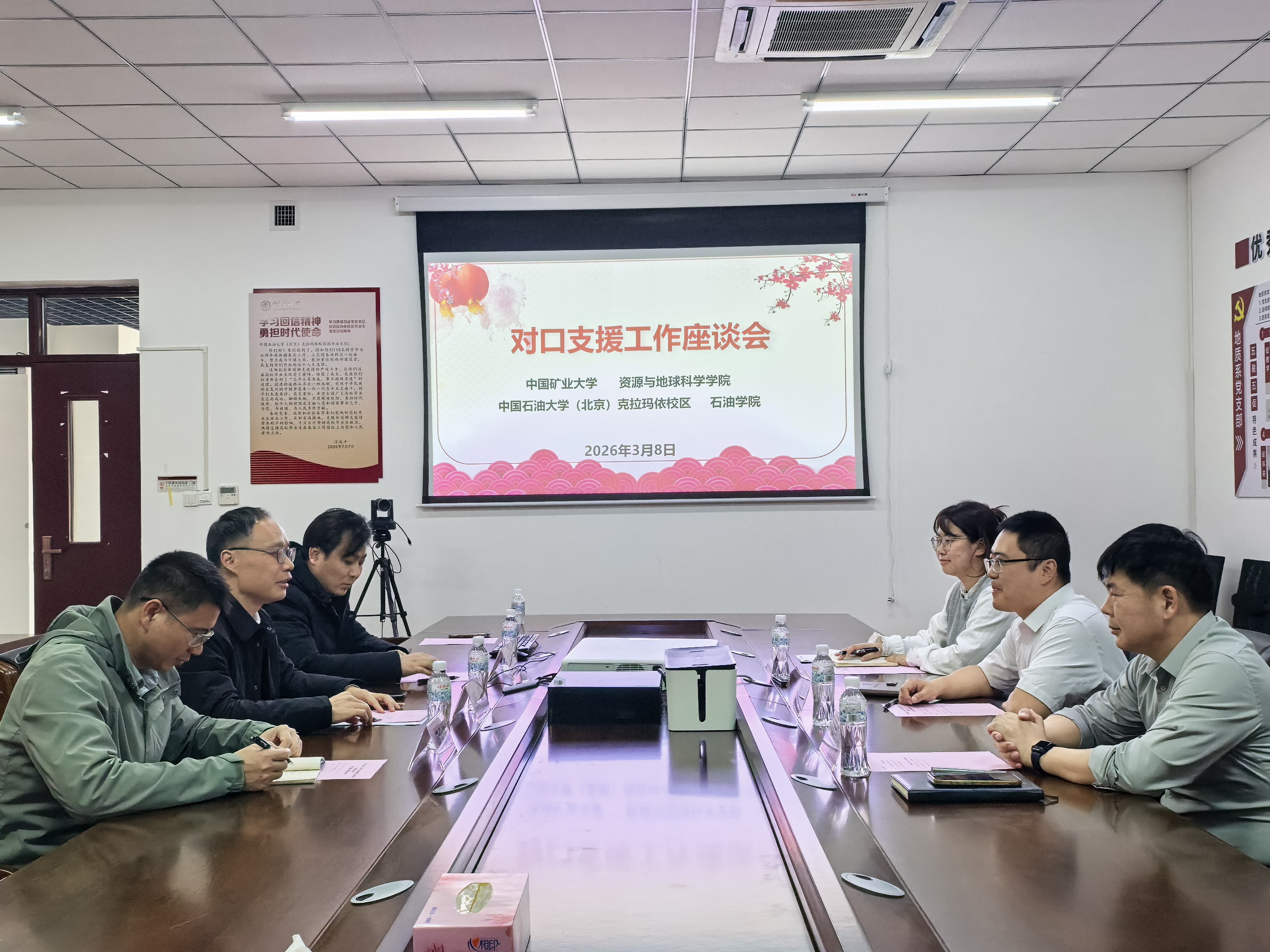 在中国石油大学(北京)克拉玛依校区,石油学院党委副书记(主持学院党委工作)彭岩、副院长祁利祺等参加座谈会。杨昭介绍了学院的基本情况及援疆教师何金先的教学科研经历,他表示,学院将援疆工作作为服务国家战略需求的重要政治任务,按照上级工作要求和受援单位需求精心组织援疆教师选派工作,希望以援疆教师为纽带,促进双方在人才培养、科学研究方面的交流合作。彭岩对我院对于援疆工作的大力支持表示衷心感谢,对何金先老师表示热烈欢迎,他表示,石油学院将严格落实相关保障办法,全力做好援疆教师的工作、生活条件保障,并为教师发展提供有力支持;他介绍了石油学院的整体情况,希望双方在党建共建、课程开发、科研项目共研等方面深化合作。何金先做表态发言,并就教学内容、科研任务等具体工作进行沟通交流。座谈会后,石油学院院长刘汇川陪同学院一行考察了校内实习基地,就联合开展地质实习等事项开展交流。学院一行还实地走访了援疆教师办公室、宿舍等,详细了解其工作生活环境。