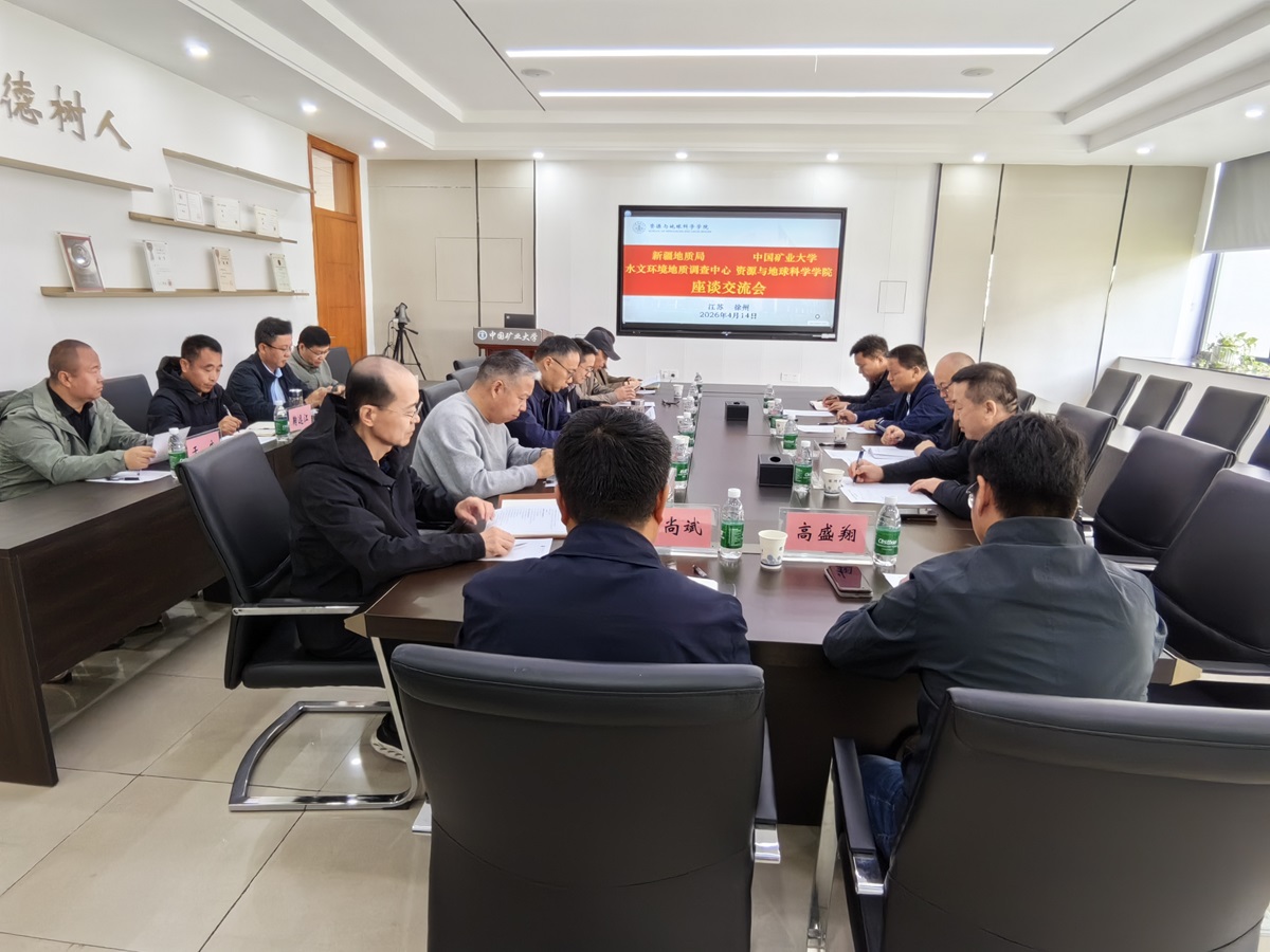 4月14日上午,新疆地质局水文环境地质调查中心党委委员、副主任王多军,第一地质环境院院长李强,自然保护地(地质遗迹)研究院副院长敬广秀,新疆兴宏泰实业(集团)股份有限公司副总经理王定珍一行4人来学院调研交流,学院在资源楼B407会议室召开座谈交流会。学院院长申建、院党委副书记杨昭、有关教师参加会议,会议由杨昭主持。