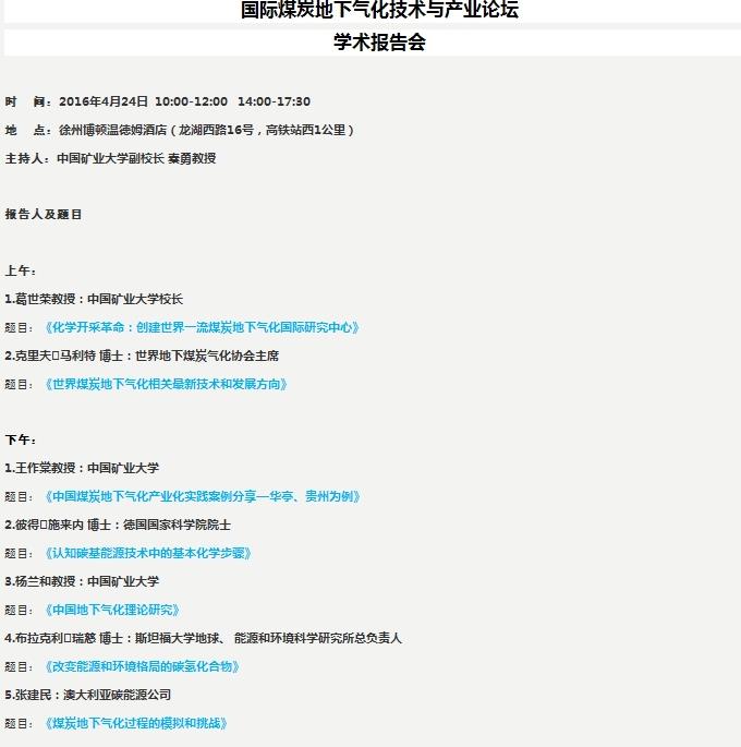 国际煤炭地下气化技术与产业论坛学术报告会通知