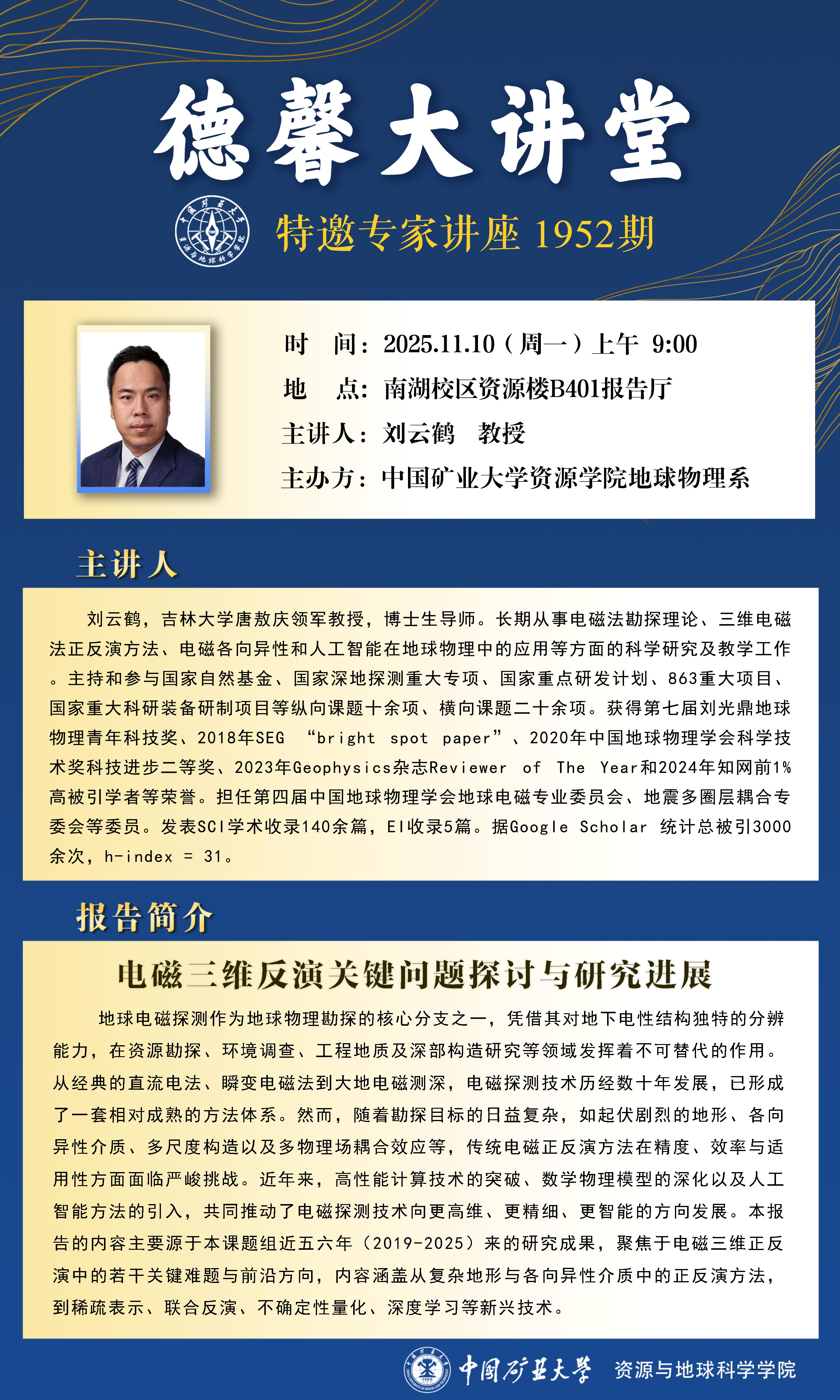 【德馨大讲堂】电磁三维反演关键问题探讨与研究进展